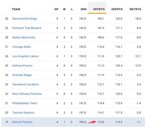 活塞本赛季的进攻效率排名第八,但最近的四场比赛下滑到联盟第19,防守效率活塞本赛季联盟第二,最近四场下滑到联盟第八,防守效率下滑没有进攻效率下滑的多,活塞本就是依靠防守的球队,进攻完完全全是CC一肩扛。