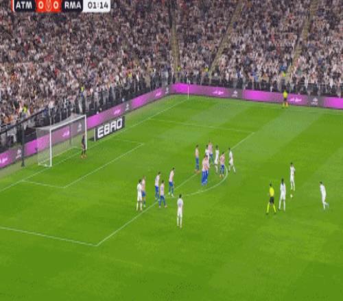 当时,皇马在距球门约35米处获得任意球机会。巴尔韦德助跑后轰出一记势大力沉的射门,皮球如出膛炮弹般直挂球门右上死角,马竞门将奥布拉克毫无反应,只能目送入网。这粒进球瞬间点燃全场,也为白衣军团取得梦幻开局。