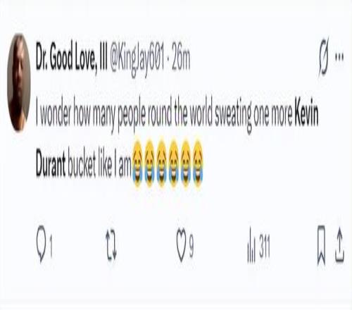 一位火箭球迷认为球队煞费苦心的交易得到杜兰特,最终战绩还不如上赛季的太阳,太搞笑。