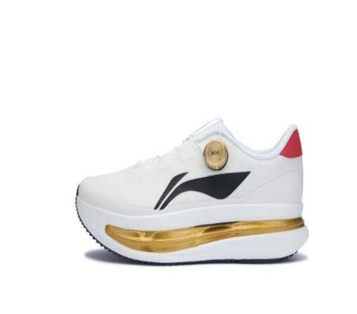 室内领奖鞋赤兔9 ULTRA SE基于李宁经典跑鞋IP“赤兔”打造,寄托了奋勇向前、常胜不止的寓意。鞋面适配冬季应季性穿着需求,采用密实梭织面料,提供高韧性保护,同时满足运动员高强度运动后所需的足部稳定包裹。中底采用了独创的三层“䨻”结构,快速系带系统则采用了冠军金色旋钮。
